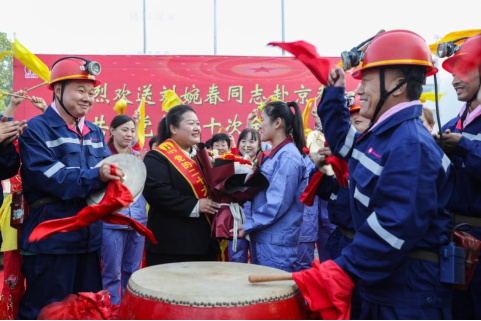 (2022年10月7日,淮北礦業集團在桃園礦舉行儀式,歡送黨的二十大代表、桃園礦保運區職工劉婉春赴北京參加中國共產黨第二十次全國代表大會。)