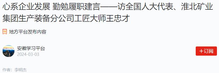 臨近全國兩會,全國人大代表、淮北礦業(yè)集團(tuán)生產(chǎn)裝備分公司工匠大師王忠才的建議基本定稿?!敖衲赀€是關(guān)注企業(yè)發(fā)展,畢竟我是來自企業(yè)一線的代表?!彼f。