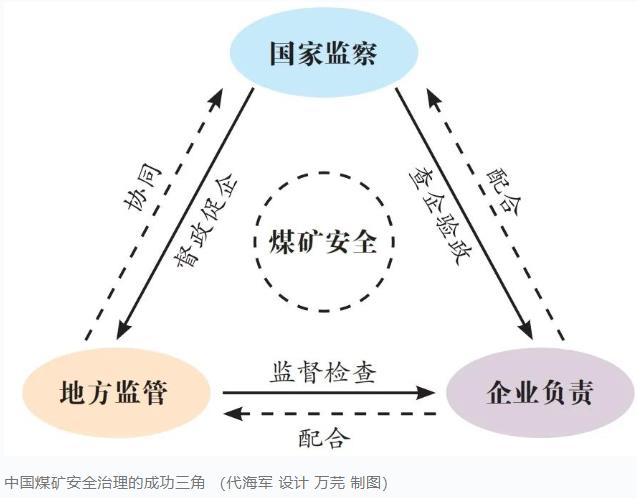 “國(guó)家監(jiān)察、地方監(jiān)管、企業(yè)負(fù)責(zé)”,搭建起煤礦領(lǐng)域大安全大應(yīng)急的框架,既是應(yīng)急管理組織理論的重大創(chuàng)新,也是法治化建設(shè)的最新成果。三者在煤礦安全治理中扮演不同角色,相互聯(lián)系、相互作用,共同構(gòu)成了煤礦安全治理不可分割的重要組成部分。