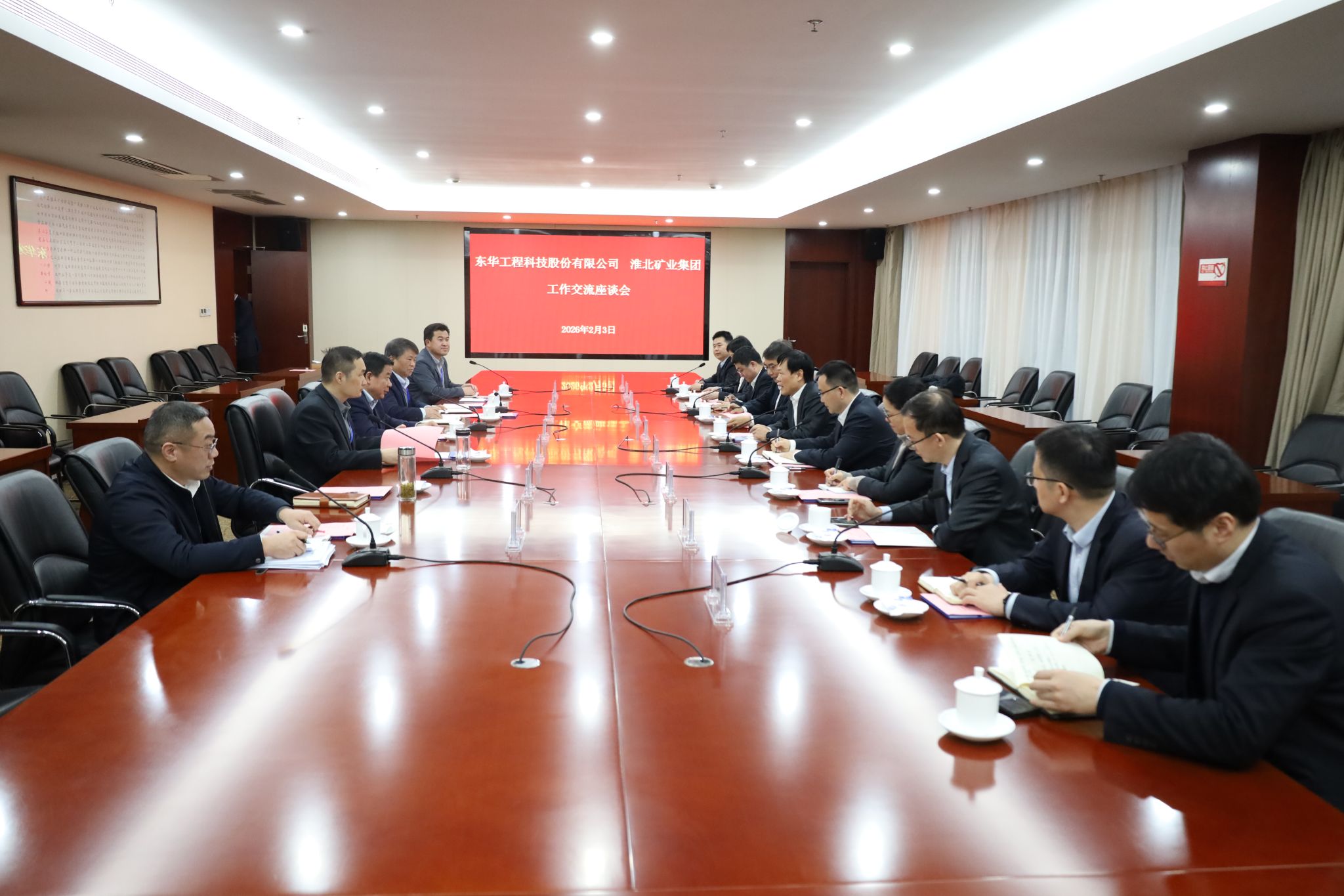 2月3日,淮北礦業(yè)集團與東華工程科技公司舉行工作交流座談會?;幢钡V業(yè)集團黨委書記、董事長、總經(jīng)理孫方,淮北礦業(yè)財務(wù)總監(jiān)殷召峰;東華工程科技公司黨委書記、董事長李立新,黨委副書記、總經(jīng)理孟陳周,黨委委員、副總經(jīng)理葉平,以及雙方相關(guān)部門負責(zé)人參加座談。